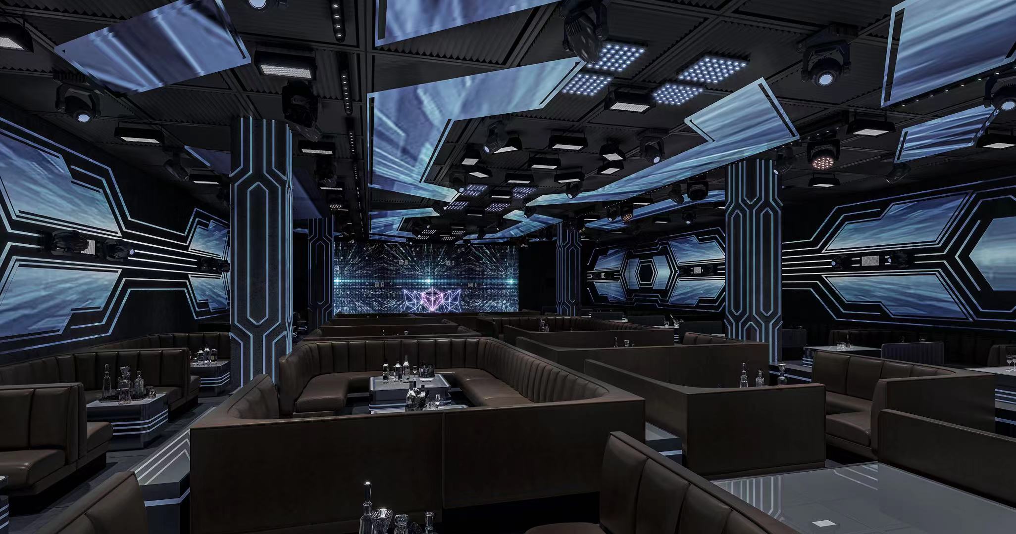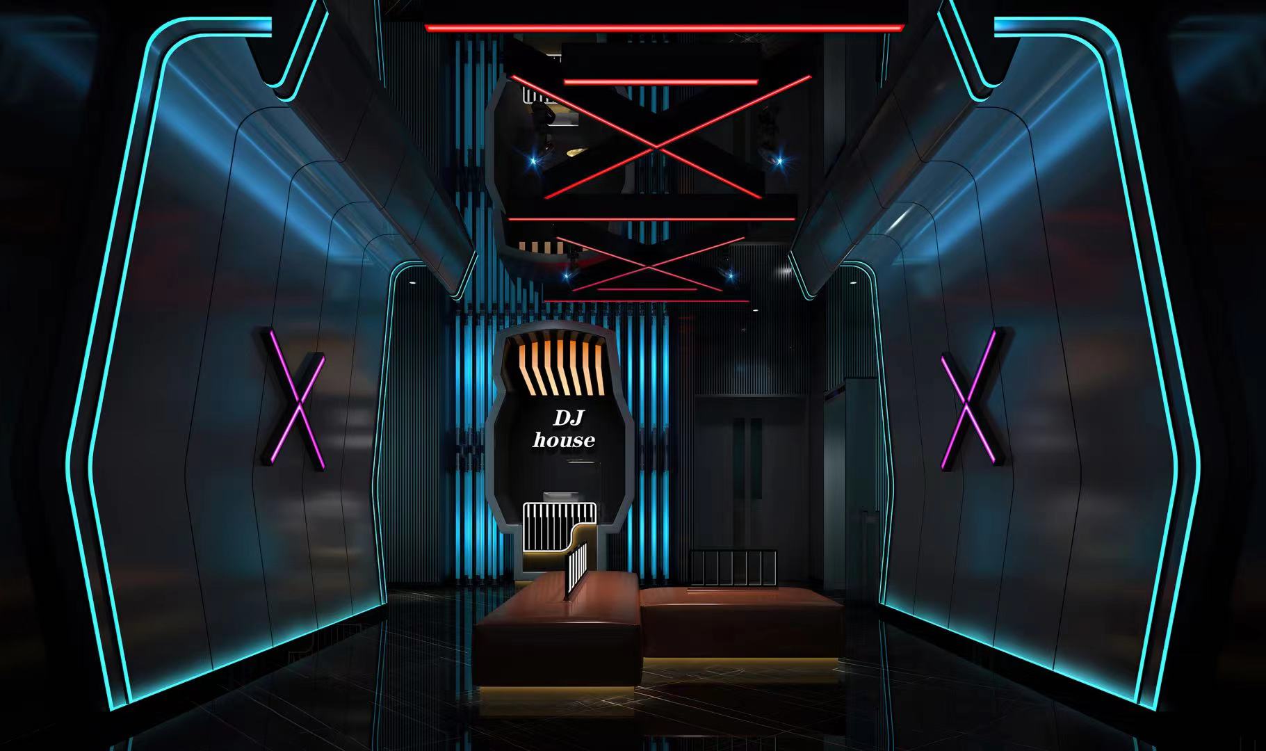 本案珠海唐潮派对酒吧,设计师用纵横的线条交错,蓝白为主的霓虹色调,勾勒出了一个如梦似幻的集派对酒吧和派对KTV为一体的星际穿越空间。他以整体角度出发,辅以细节处点缀,使得整个设计交融一体、相辅相成,让踏足于此的消费者能全身心地沉浸在一个如梦似幻的空间内,彻底放松自己。