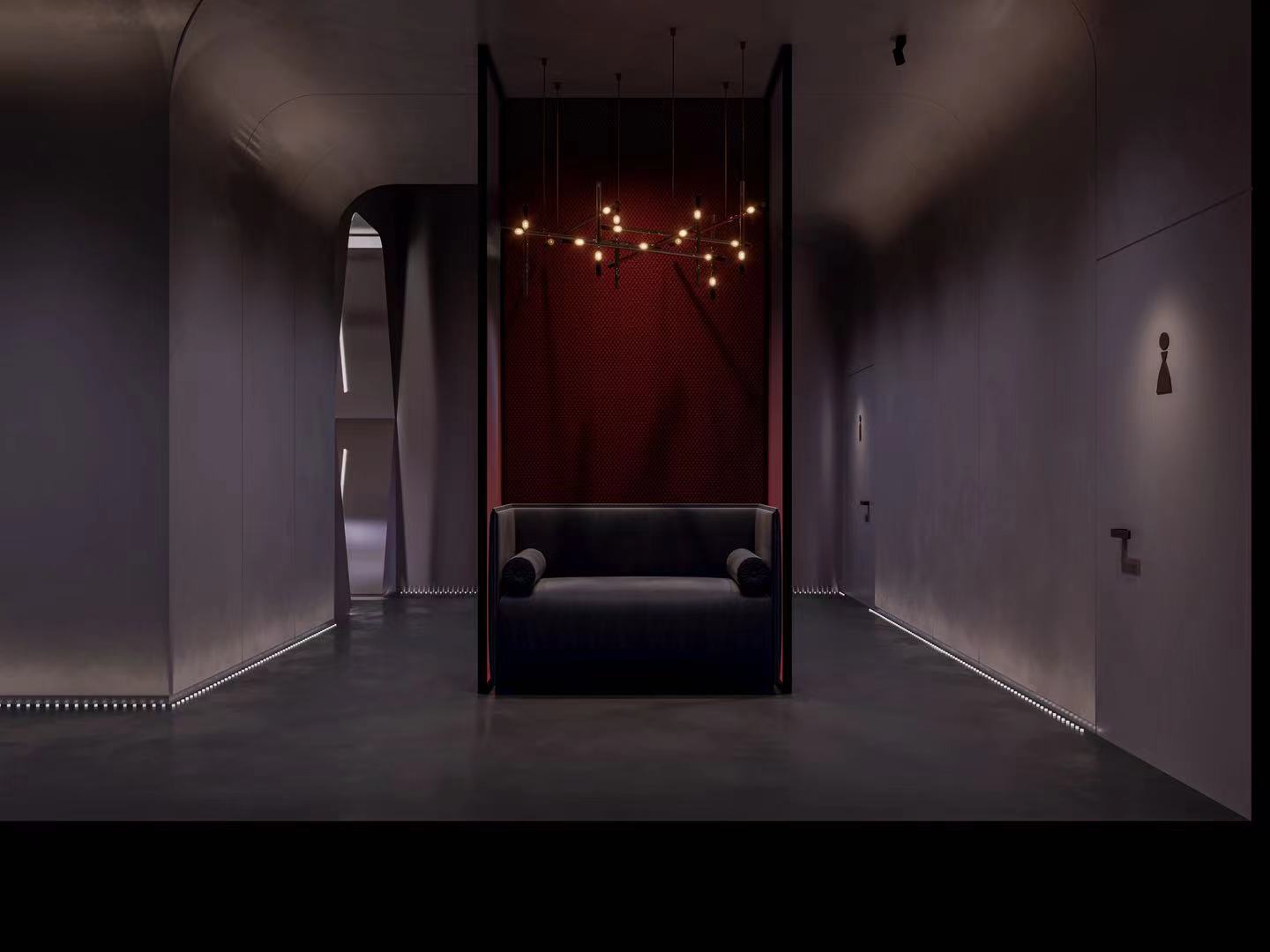 细节之处方显真章,好的酒吧设计公司和KTV设计公司往往不会忽略掉细微不受重视之处,因为只有完整不割裂的设计才能称得上好设计,就譬如本案卫生间以及卫生间休息室的设计,采用了极简的墙面设计搭配上画龙点睛般的灯光效应,化腐朽为神奇,将两者与酒吧的整体设计调性充分融合,让消费者从酒吧主体区域走出后有从一处梦幻走向另一处梦幻的连贯感觉。