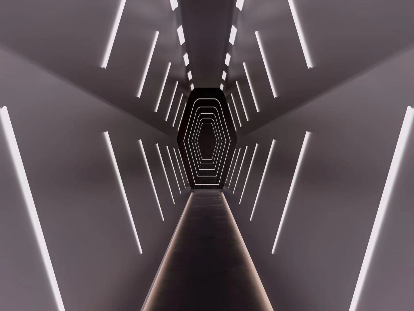 设计师以简单规整的几何图形设计排列,辅以整齐有序的灯光、简约的金属质感建材,化繁为简,极大提高了走道的纵深效果,让消费者行走其中就好像是置身于穿梭隧道之中,有种步步穿越移形的奇异之感。