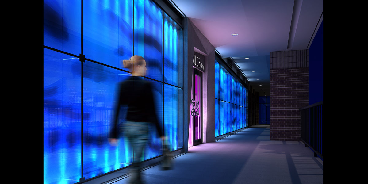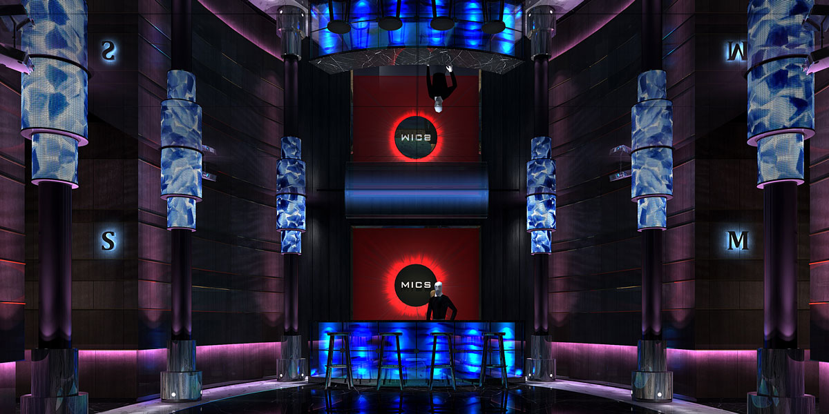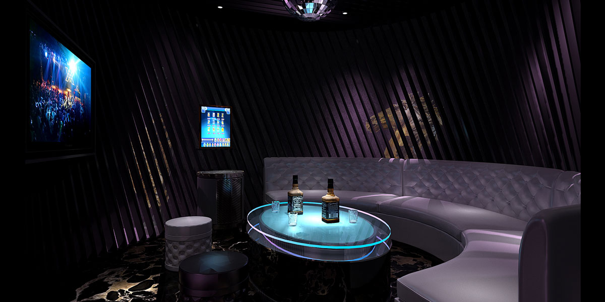 在内部整体设计上看,与外观是一脉相承,走入美国MICS KTV给人层次感分明,立体效果十分的突显,线条设计感很强,不规则与规则中找到平衡。色彩对比十分到位,呈现出很舒适的视觉感,在空间上突显时尚与科技感的结合,设计手法重在娱乐感、空间感的搭配。