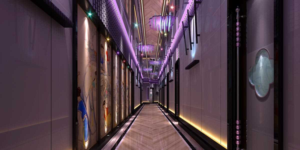走廊设计也是独具匠心,左侧墙壁使用成语故事的彩绘,来传递邯郸的文化符号。用传统的灰色瓦片,拼接成房子造型,设置为不同的区间,一个成语故事,就是一个小窗口,就是一段动人故事,在传播古老文化的同时,用精美的图案让空间有了传统文化的厚重感。灯具的选择也是很用心,选择印有天花祥云的灯具,与墙壁上的彩绘故事融为一体,给人一种穿过古老建筑中别有韵味的小巷子的感觉,处处体现设计的用心。